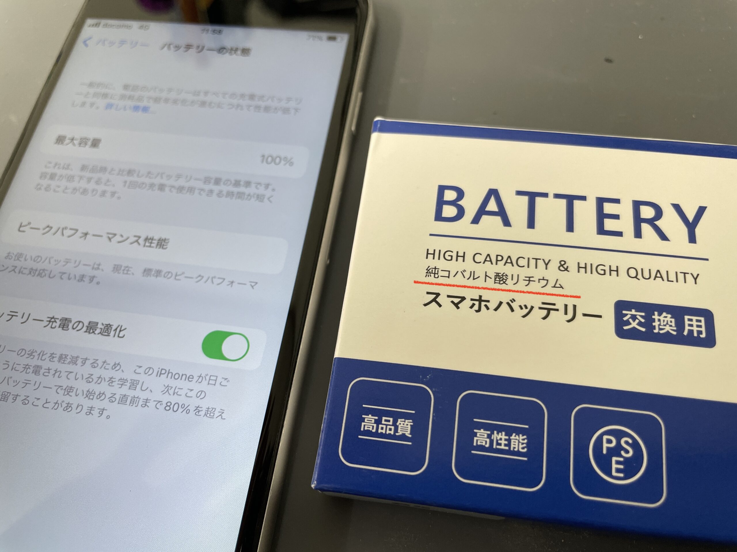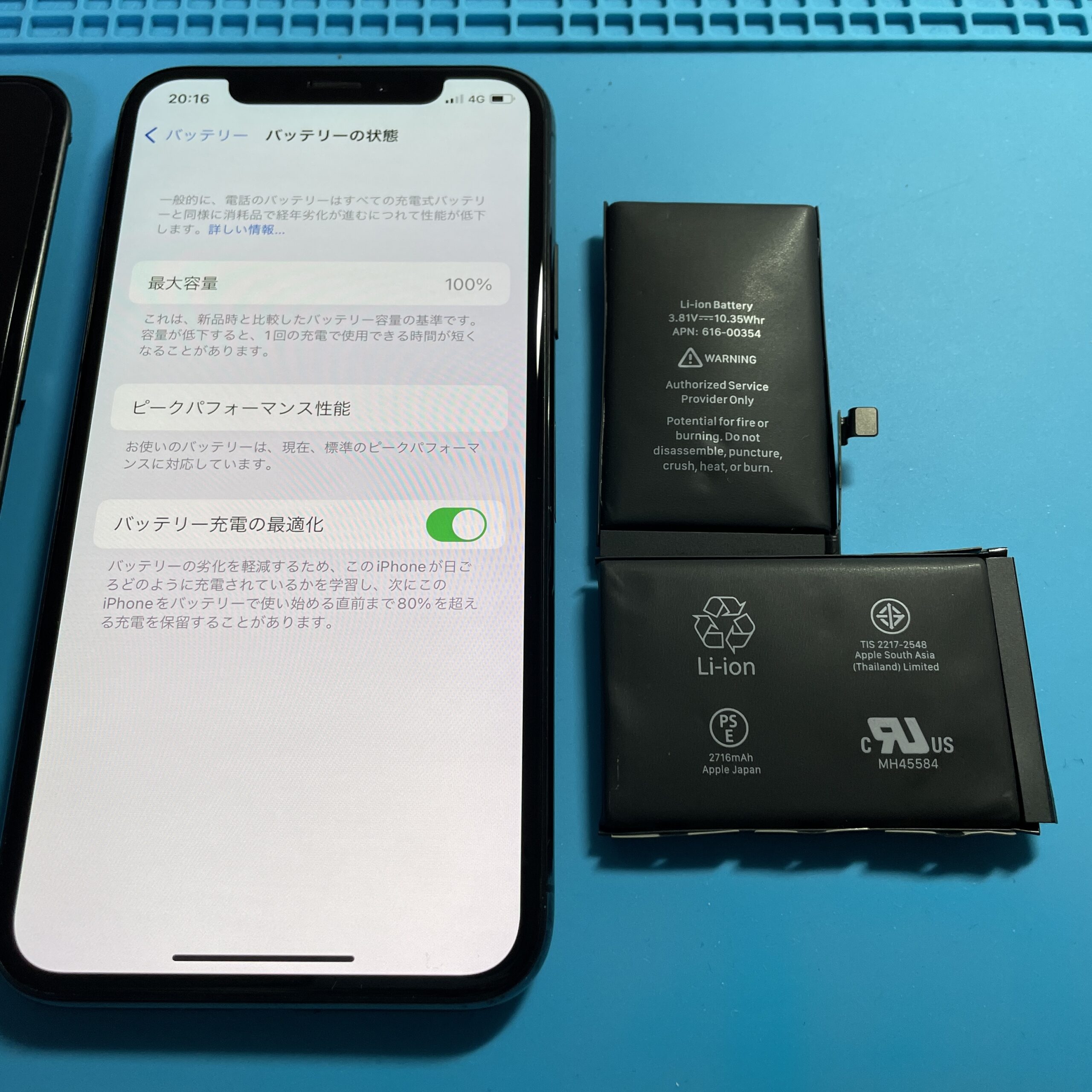 新しいiPhoneのバッテリーに交換して作業完了!